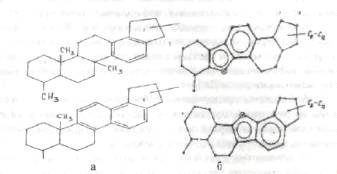 а - молекулы моноциклоароматического и бициклоароматического соединений масел;