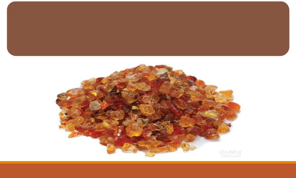 Камеди представляют собой кальциевые, магниевые и калиевые соли высокомолекулярных кислот, состоящих из остатков гексоз, пентоз, метилпентоз и уроновых кислот.