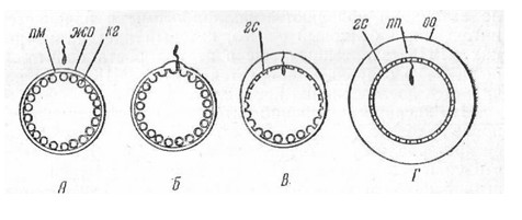 болочка кг-кортикальная гранула; оо-оболочка оплодотворения пм-плазматическая