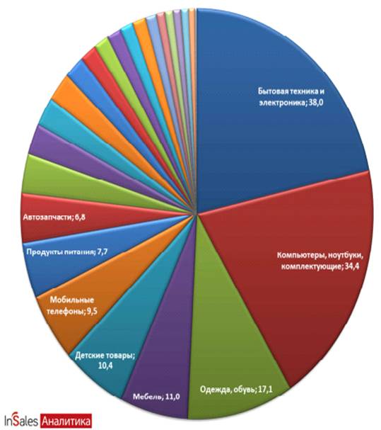 Рис. 1 - Объем онлайн - торговли в разных сегментах (млрд.рубл.)
