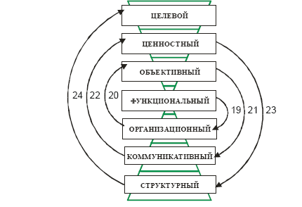21. Коррекция требований к коммуникативным связям в зависимости от изменений в управленческих решениях, по выявлению сегмента рынка и соответственно дополнение к реализуемой миссии организации, . Расширение понимания ценности миссии для сотрудников и изменение организационной культуры, посредством изменения требований к коммуникациям. . Адаптация и изменение, организационной и производственных структур, в зависимости от инноваций в организационной культуре по реализации миссии. . Коррекция и дополнение идеи миссии организации с учетом приобретенных возможностей организационной и производственной структур. Создание миссии организации нового качества. Данный механизм по формированию и реализации миссии организации позволяет