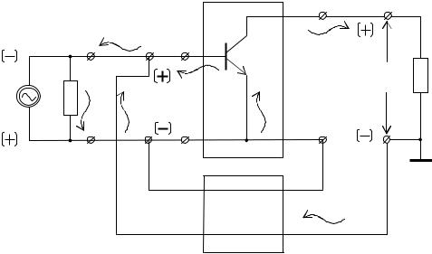 Полученные выше результаты можно легко объяснить, если представить схему с ОБ в виде схемы с ОЭ, охваченной 100 %-ой отрицательной обратной связью по току параллельной по входу (рис. 3.8).