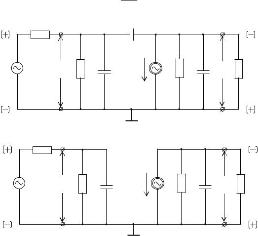 Рабочая область напряжений между затвором и истоком для транзистора (см. рис. 3.16, а) находится в промежутке от UЗ = 0 до –UOTC. Для транзисторов с p-каналом (рис. 3.16, б) эта область лежит справа от UЗ = 0. Рис. 3.16, в – е относятся к ПТ с изолированным затвором и с встроенным каналом (рис. 3.16, в – канал n-типа; рис. 3.16, г – канал p-типа). Постоянное напряжение на затворах этих транзисторов может быть как положительным так и отрицательным. На рис. 3.16, д – е представлены ПТ с изолированным затвором и с индуцированным каналом (рис. 3.16, д – канал n-типа; рис. 3.16, е - канал p-типа). Их рабочие области находятся соответственно справа и слева от UЗ = 0. Выходные характеристики для всех типов транзисторов имеют одинаковую форму (рис. 3.16, ж), но при этом следует учитывать, что на сток транзисторов с n- каналом подается положительное напряжение, а с p-каналом – отрицательное. Существующие различия между типами ПТ, технологиями их изготовления, полярностями напряжений на электродах и т.д. не оказывают заметного влияния на вид эквивалентной схемы, применяемой для описания работы усилительных устройств, собранных на этих транзисторах. Это обстоятельство позволяет использовать для дальнейшего анализа только один тип транзистора (с управляемым p-n-переходом и каналом n-типа). При этом проведенный анализ в равной мере будет относиться и ко всем остальным типам ПТ.