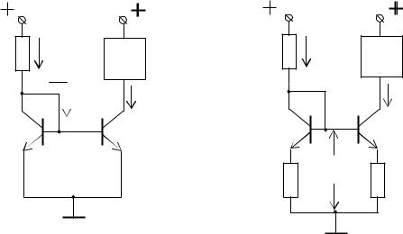 Если сопротивление R1 является термонезависимым, то ток в цепи коллектора транзистора VT2 будет стабильным и не будет зависеть от температуры. Кроме того, выходное сопротивление транзистора VT2 со стороны коллектора имеет большую величину (100 - 300) кОм, следовательно, включение в цепь его коллектора нагрузки (на схеме двухполюсник с буквой Н) не будет оказывать влияния на ток I0. Таким образом, схема (рис. 3.33, а) является генератором термостабильного тока для нагрузок, изменяющихся от нуля до нескольких десятков кОм.