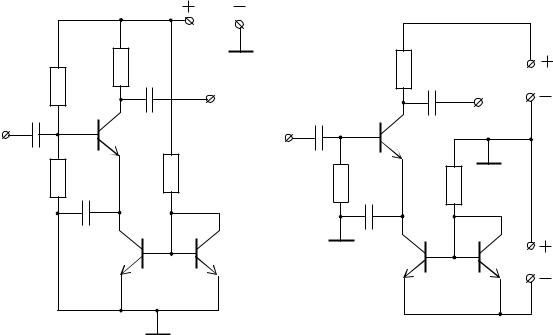 отсутствует постоянная составляющая. При необходимости разделить каскады по постоянной составляющей в базовую цепь включают конденсатор С1 и сопротивление R1 (на рис. 3.39, б они показаны пунктиром). Такой способ питания транзисторных каскадов очень широко используется в интегральной схемотехнике и при разработке дифференциальных каскадов.