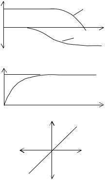 На рис. 6.1 представлены также фазовая, переходная и амплитудная характеристики усилителя постоянного тока. Его фазовая характеристика отличается от подобной характеристики усилителя переменного тока тем, что она расположена в области отрицательных значений фазового сдвига. На переходной характеристике УПТ отсутствует спад в области больших времен, характерный