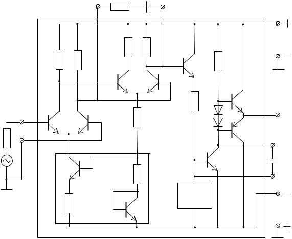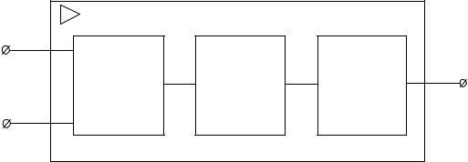 Структурная схема современного операционного усилителя (рис. 8.1) обычно включает в себя входной усилительный каскад, каскад усиления со сдвигом уровня и выходной каскад, непосредственно связанные друг с другом. В качестве входного каскада используется, как правило, дифференциальный каскад, обладающий низким уровнем температурного дрейфа, высокой стабильностью и нечувствительностью к синфазным помехам. (Довольно часто для увеличения общего усиления используются два дифференциальных каскада, включенных последовательно.) Дополнительная многофункциональность появляется в таких усилителях благодаря наличию инвертирующего и неинвертирующего входов. Для обеспечения большого входного сопротивления, хороших шумовых параметров и низкого уровня дрейфа входные дифференциальные каскады работают при малых токах коллектора (десятки – сотни микроампер). Поэтому крутизна используемых в них транзисторов получается небольшой, а коэффициент усиления – сравнительно низким. С выхода предварительных каскадов снимается однофазный сигнал и поступает на вход каскада, который имеет значительный коэффициент усиления по мощности и обеспечивает необходимый сдвиг уровня. В качестве выходного каскада в операционных усилителях обычно используются двухтактные эмиттерные повторители на комплементарных транзисторах. Эмиттерный повторитель, включенный на выходе операционного усилителя, позволяет получить необходимое усиление по мощности и маленькое выходное сопротивление. Питание операционных усилителей в большинстве случаев осуществляется от двухпо-
