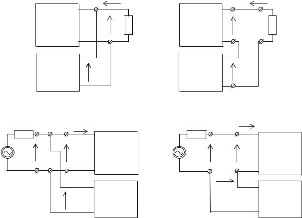 Проведя аналогичные рассуждения относительно внутреннего сопротивления источника сигнала, можно утверждать, что параллельная ОС по входу (см. рис. 2.5, в) перестает действовать, если R1 устремить к нулю (генератор ЭДС на входе). Последовательная ОС по входу (см. рис. 2.5, г) не действует, если R1 стремится к бесконечности (на входе - генератор тока).