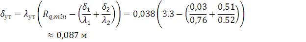 Товщину утеплювача можна визначити із залежності:
