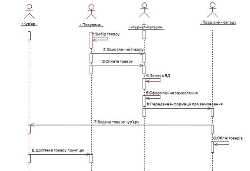 діаграми послідовністі та кооперації, що описують роботу інтернет магазину