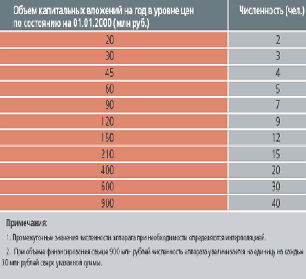 Таблица 1. Нормативы численности аппарата службы заказчиказастройщика в зависимости от годового объема капитальных вложений