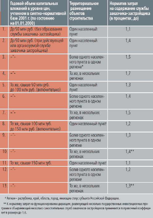 Таблица 2. Нормативы затрат на содержание службы заказчиказастройщика, технического надзора, управлений (отделов) капитального строительства, дирекций по реализации целевых программ и строящихся предприятий, осуществляющих строительство с использованием средств федерального бюджета на 2003-2004 гг.