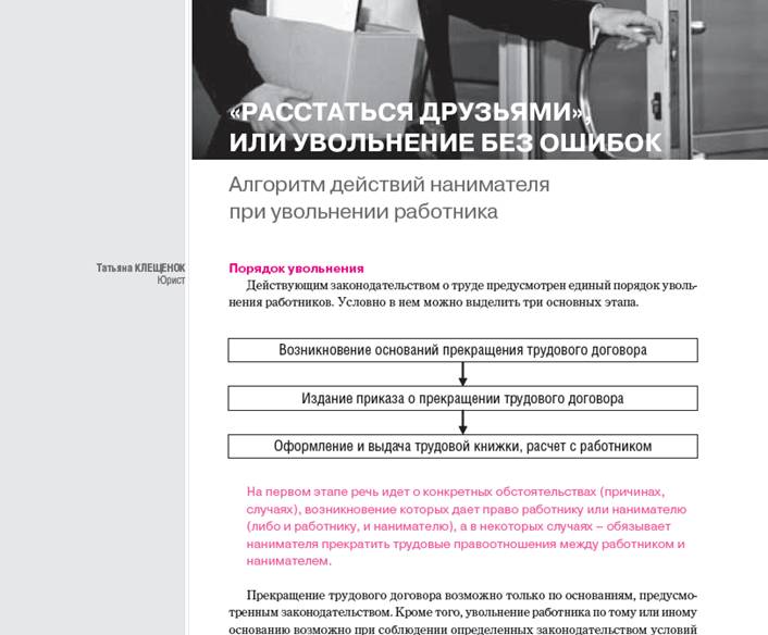 . Сахащик, К.В. Увольнение в