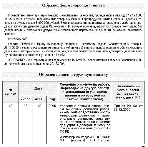 .2.2 Увольнение в связи с утратой доверия (п. 2 ст. 47 ТК)