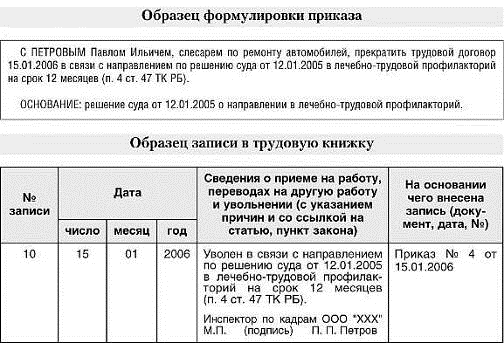 постановлению суда в лечебно-трудовой профилакторий (п.4 ст.47 ТК РБ).