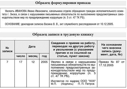 предупреждению коррупции (п. 5 ст. 47 ТК РБ).
