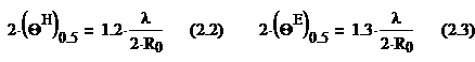 (2.2) и (2.3) можно определить диаметр раскрыва, причем, из полученных двух