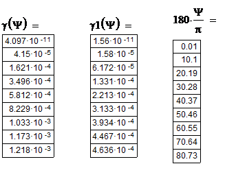 По максимуму построенной графически функции γ’ (Ψ0) определяется угол раскрыва зеркала (шаг изменения угла раскрыва Ψ0 не более 5°).