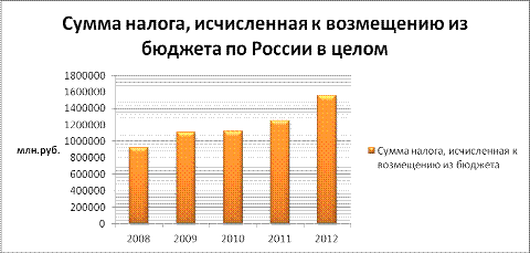 увеличивается и сумма НДС к возмещению. Если сравнивать 2008 год с 2012 годом,