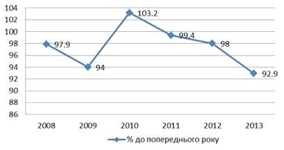 Рис. 2.2. Індекси виробництва харчової промисловості протягом 2008-2013 рр.