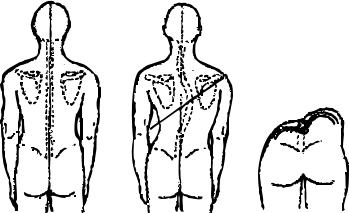Рис. 10.2 Нормальная спина (а) и спина со сколиозом (б) по книге «Спортивная медицина»