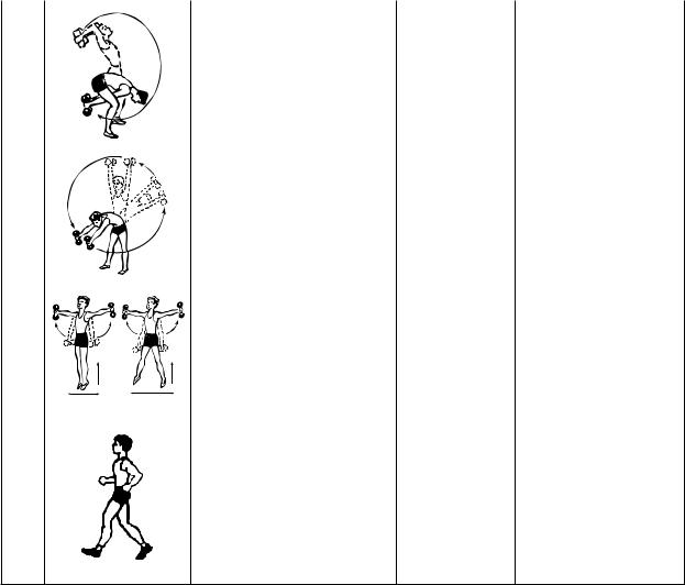 Прежде чем выполнять упражнения с гантелями проделайте 6-8 упражнений без предмета на различные группы мышц и суставы. Выполняя упражнения с гантелями, давайте отдых рукам: кладите гантели и делайте встряхивания руками, расслабляйте мышцы ног, туловища.