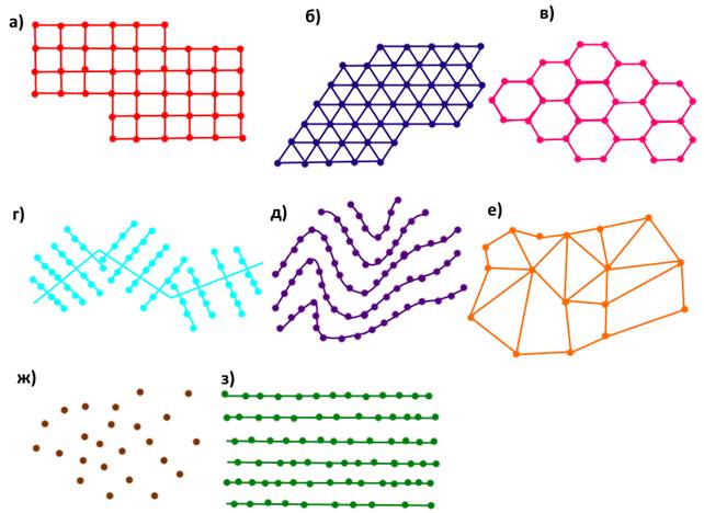 шестиугольных сеток (регулярные); г - структурные - на поперечниках к