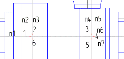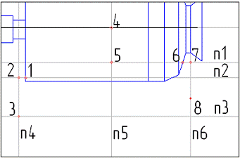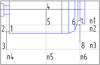 Построение линии разгрузки начните с ввода вспомогательных вертикальных n2, n3, n4, n5 и горизонтальных n1, n6, n7