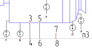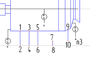С помощью команды Ввод текста на странице Обозначения введите номер линии связи. Введите такой же номер линии связи для вентиля, установленного на верхнем трубопроводе.