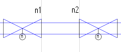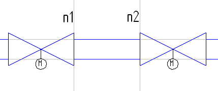 Для построения трубопровода проводим две параллельные горизонтальные линии и устанавливаем на них скопированное изображение ранее нарисованного клапана.