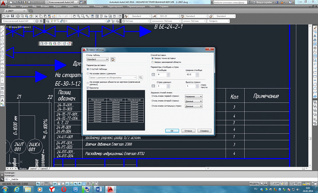 Необходимо выполнить построение спецификации КИП и А рисунк 2.7