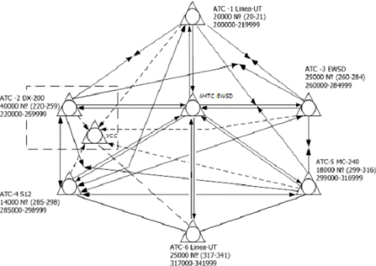 Каждая АТС подключается к сети пакетной коммутации через транспортный