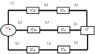 А) наибольшее влияние на генеральную цель Ц0 имеет четвертая подсистема С104, вес которой составляет 0,3(30%). Поэтому при ограниченных общих ресурсах наибольший результат по улучшению целевого норматива ЦН0 можно получить, воздействуя на подсистему С104.