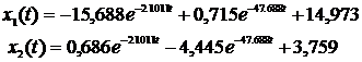 принужденной составляющей x1(t)= x1 =0 и x2(t)= x2 = -3.