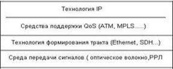 Верхний слой отвечает за поддержку заданных качественных показателей (QoS). Для телефонной связи при использовании тракта STM (в качестве транспортных ресурсов) и технологии коммутации каналов (в ТФОП) функции этого слоя будут нулевыми, то есть они не нужны. В мультисервисной сети поддержка показателей QoS осуществляется за счет технологий ATM, MPLS и им подобных.