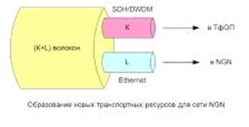 Второе множество, состоящее из L волокон, используется для создания Ethernet трактов. Эта технология - одно из оптимальных транспортных средств для Интернет и мультисервисной сети в целом.