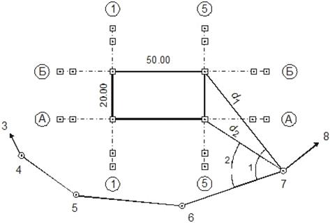 обычно способом полярных координат. Так, для вынесения точки Б5 (см. рис. 1)