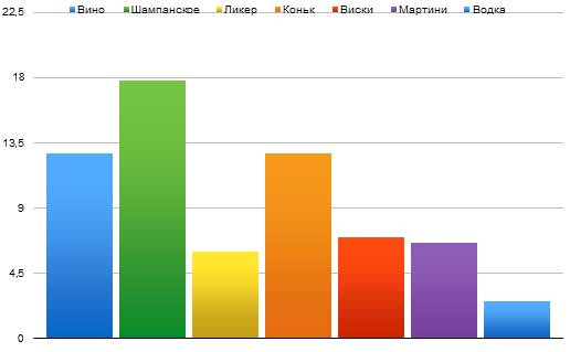для сравнения список наиболее популярных спиртных напитков. Оцените