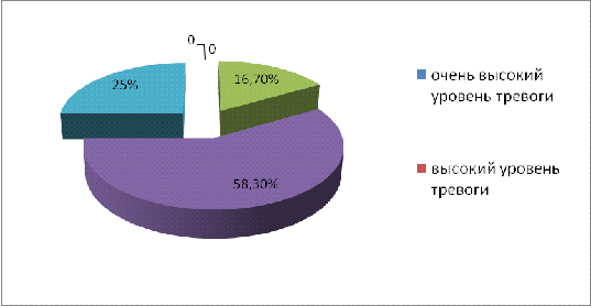 исследуемых отсутствуют очень высокий и высокий уровни тревоги, что может