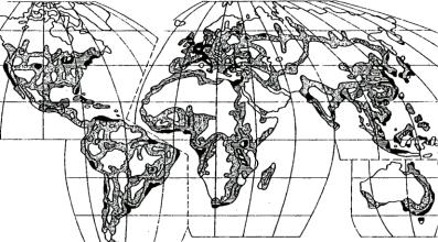 Рис. 2.3.1. «Экуменополис» – глобальная система расселения ленточного типа, опоясывающая континенты, К. Доксиадис, 1965 г.