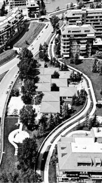 Рис. 3.2.7. Для велосипедного движения в пределах жилых территорий прокладываются велосипедные дорожки, которые трассируются вдоль пешеходных путей и местных проездов, но раздельно от них