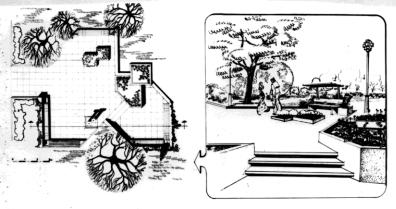 Места кратковременного отдыха могут размещаться на свободных участках среди производственно-деловой застройки, на предзаводских площадях и в пределах производственных территорий (рис. 3.3.2).