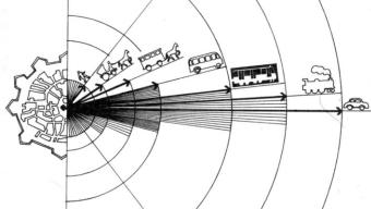 Рис. 1.2.3. Влияние процессов развития транспорта на рост городов