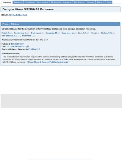 Рисунок 3: Protein Data Bank - суммарная информация о найденной модели