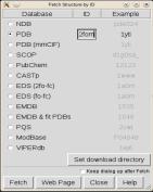 Итак, установим программу и запустим её. Теперь выберем в меню File/Fetch_by_ID (Файл - получить по идентификационному номеру). В открывшемся окне перечислены разные базы данных белковых структур. Выберем PDB и напечатаем уже знакомый нам код 2fom, а потом нажмем Fetch (получить).