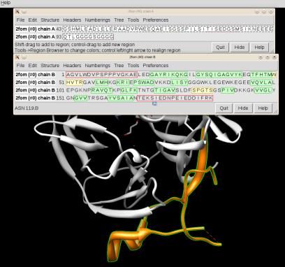 Рисунок 6: UCSF Chimera - соотвествие последовательности и трехмерной модели