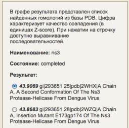Несмотря на то что в базе данных PDB хранится огромное множество трехмерных моделей для самых разных белков, не всегда можно найти расшифрованную пространственную структуру непосредственно интересующего вас белка. Например, для исследуемого белка NS3 вируса клещевого энцефалита в PDB в настоящее время нет ни одной структуры. Однако если продолжить поиск в базе PDB можно найти
