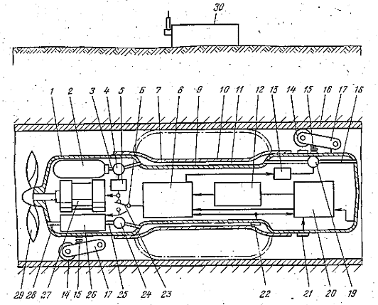 рычагами 17 и пружинами 15. Перемещается устройство с помощью пропеллерного