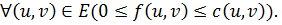есть поток через дугу неотрицателен и не превосходит пропускной способности