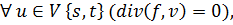 есть дивергенция потока равна нулю во всех вершинах, кроме источника и стока.